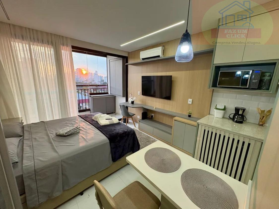Studio novo e completo, entregue exatamente como nas fotos! Mobiliado com eletros premium: Smart TV OLED, geladeira inox, forno, micro-ondas, fogão elétrico e ar-condicionado. Varanda envidraçada, lazer com academia, salão de festas, churrasqueira e lavanderia. Localização privilegiada em frente ao Metrô Carrão, com mercados, farmácias e o melhor do Tatuapé ao redor.