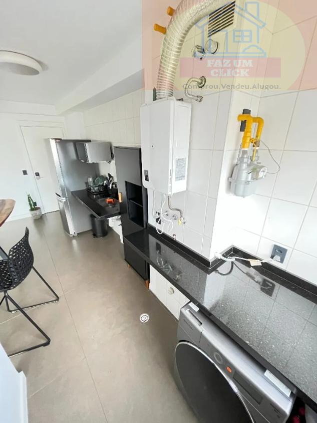 Cozinha funcional com lavanderia independente, equipada com aquecedor a gás.